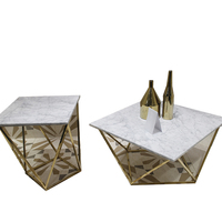 שולחן צד שיש קררה לבן בסגנון מודרני עם רגלי שולחן נחושת